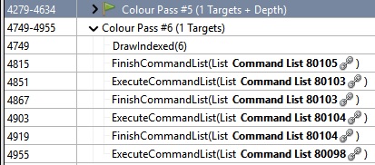 Game rendering consists of several separate render passes – shadows, normals, colour and post processing are performed in separate render passes. How to find what’s wrong easily? Usually you expect a render pass to have valid inputs and outputs – if it didn’t produce anything, it wouldn’t make sense to have it in the first place. Thankfully, I could quickly fine a pass which violated that rule of thumb – a pass consisting of a single full screen draw, outputting nothing!