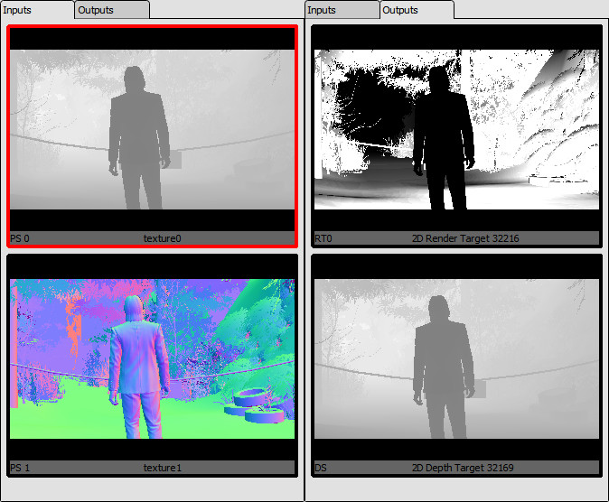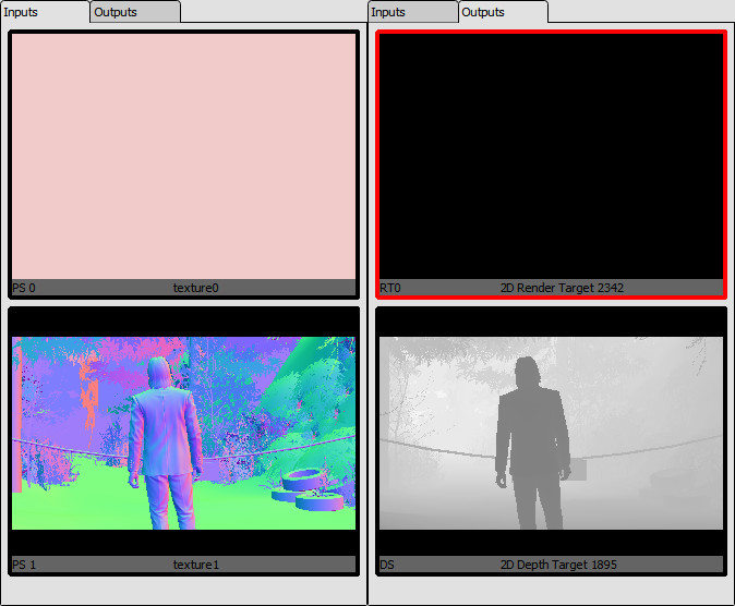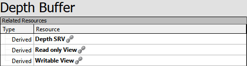 Let’s take a look at the depth buffer itself and the views it has (this is same for both unpatched and patched version). Once again, I named them for convenience, so as we don’t need to dive into D3D11 flags to understand the meaning: