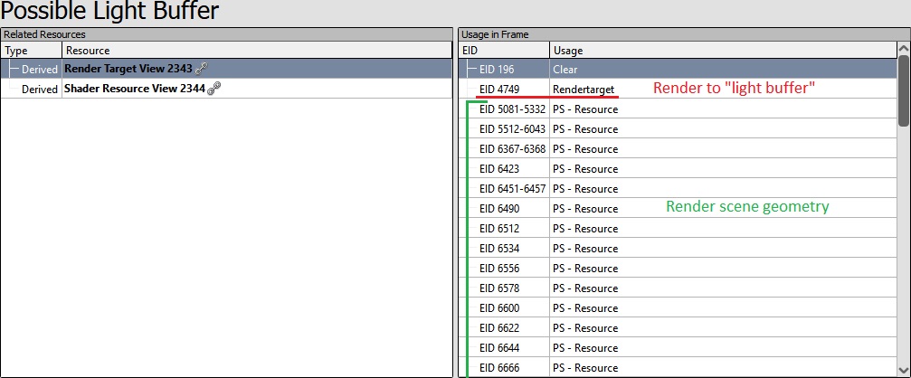 So as not to keep the analysis needlessly lengthy1 by diving into too much detail – initially I chose the wrong answer. that is I started looking into the constant buffer. My reasoning was that “it works in some cases, so clearly this unbound buffer does not matter! Otherwise it would probably never work”, and that actually turned out to be a red herring. Modifying constant buffers indeed allowed to artificially reintroduce lighting into otherwise broken scenes, but a permanent fix turned out to be impossible.