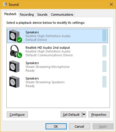 You don’t need to do much to make sure Co-Driver Splitter picks correct audio devices. All you need to do is to ensure that in Sound, your Default Communications Device is set to headphones, while Default Device – speakers or other device you want to play environment sounds through.