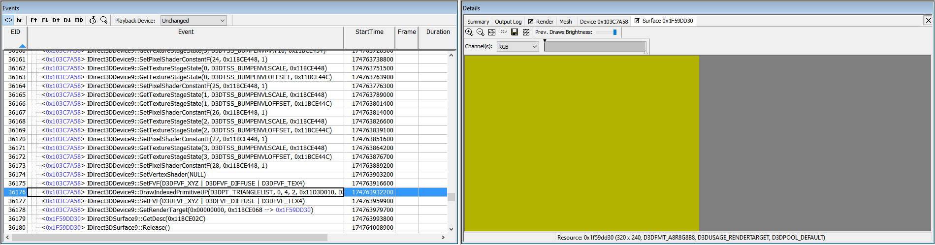 Since it’s a graphical issue, I fired up PIX and inspected the frame. It didn’t take long to find a fullscreen draw whose colors correspond to the artifact visible in-game: