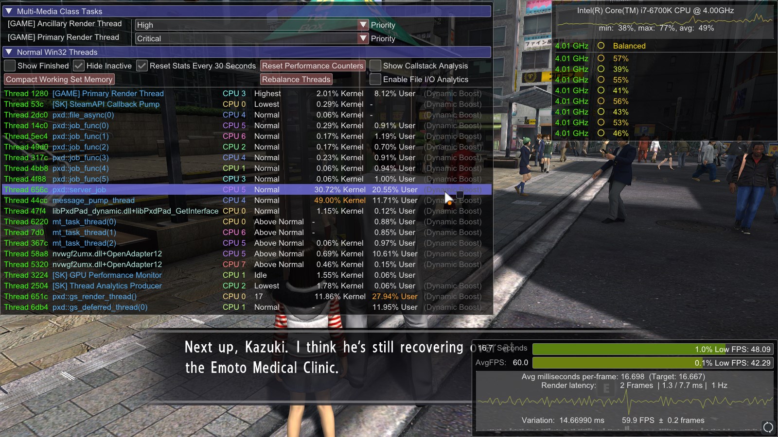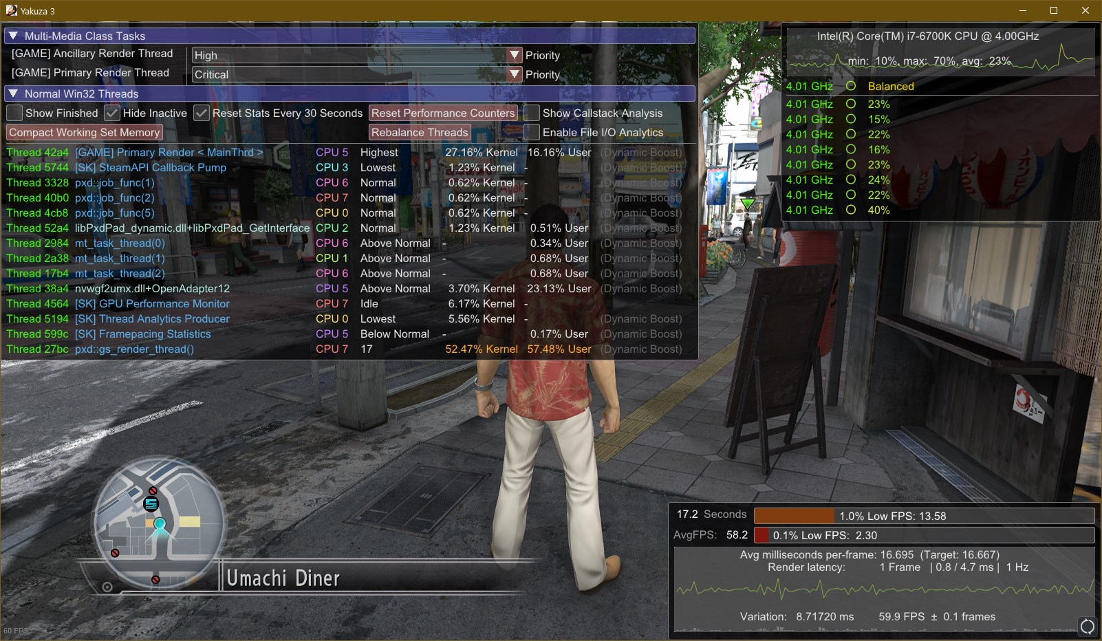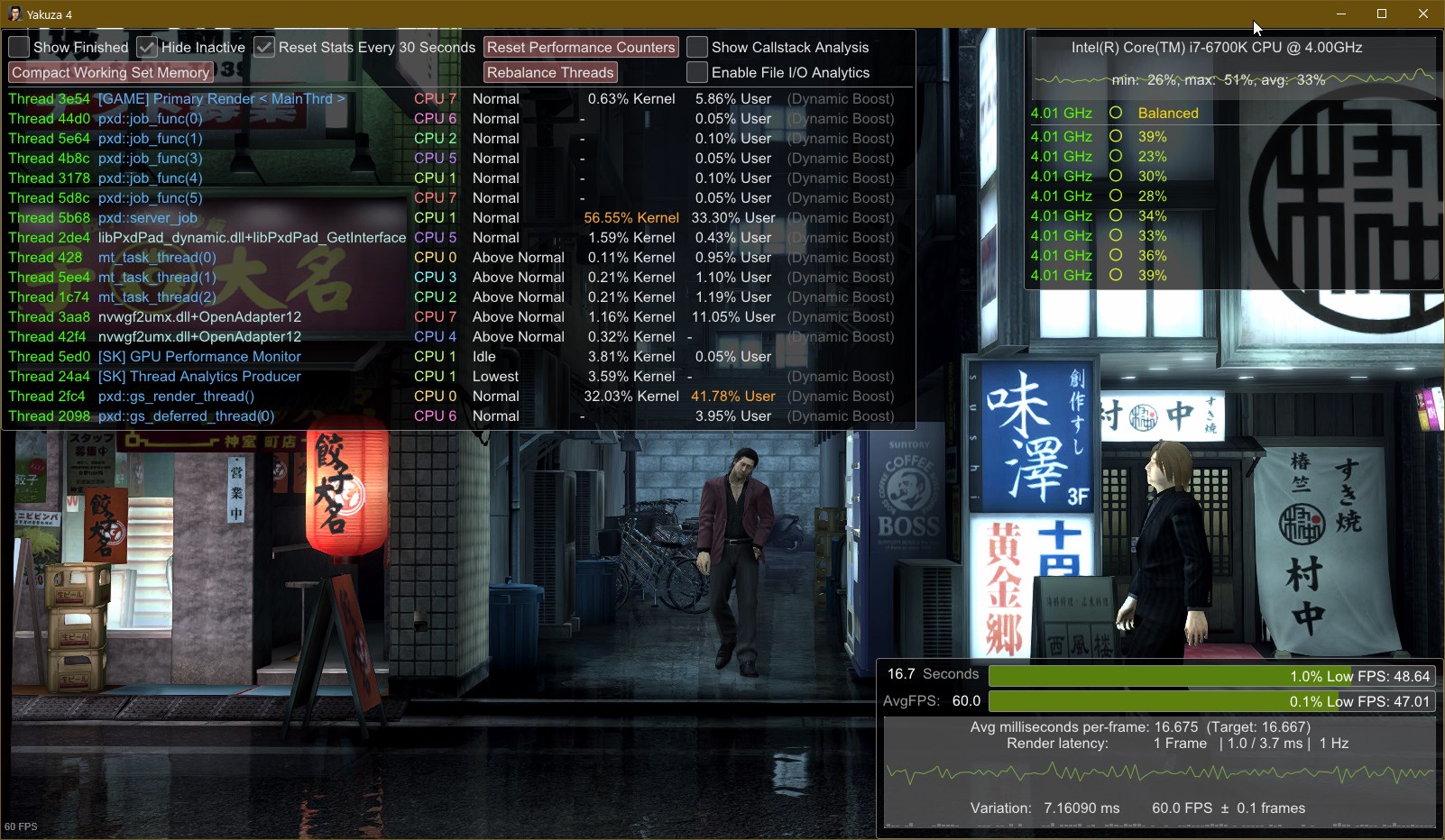 pxd::server_jobdestroyed the game’s performance, so I had to give up on that particular change. Therefore, Yakuza 4’s CPU usage is still lower than without SilentPatch, but the difference is not as drastic as it is in Yakuza 3.