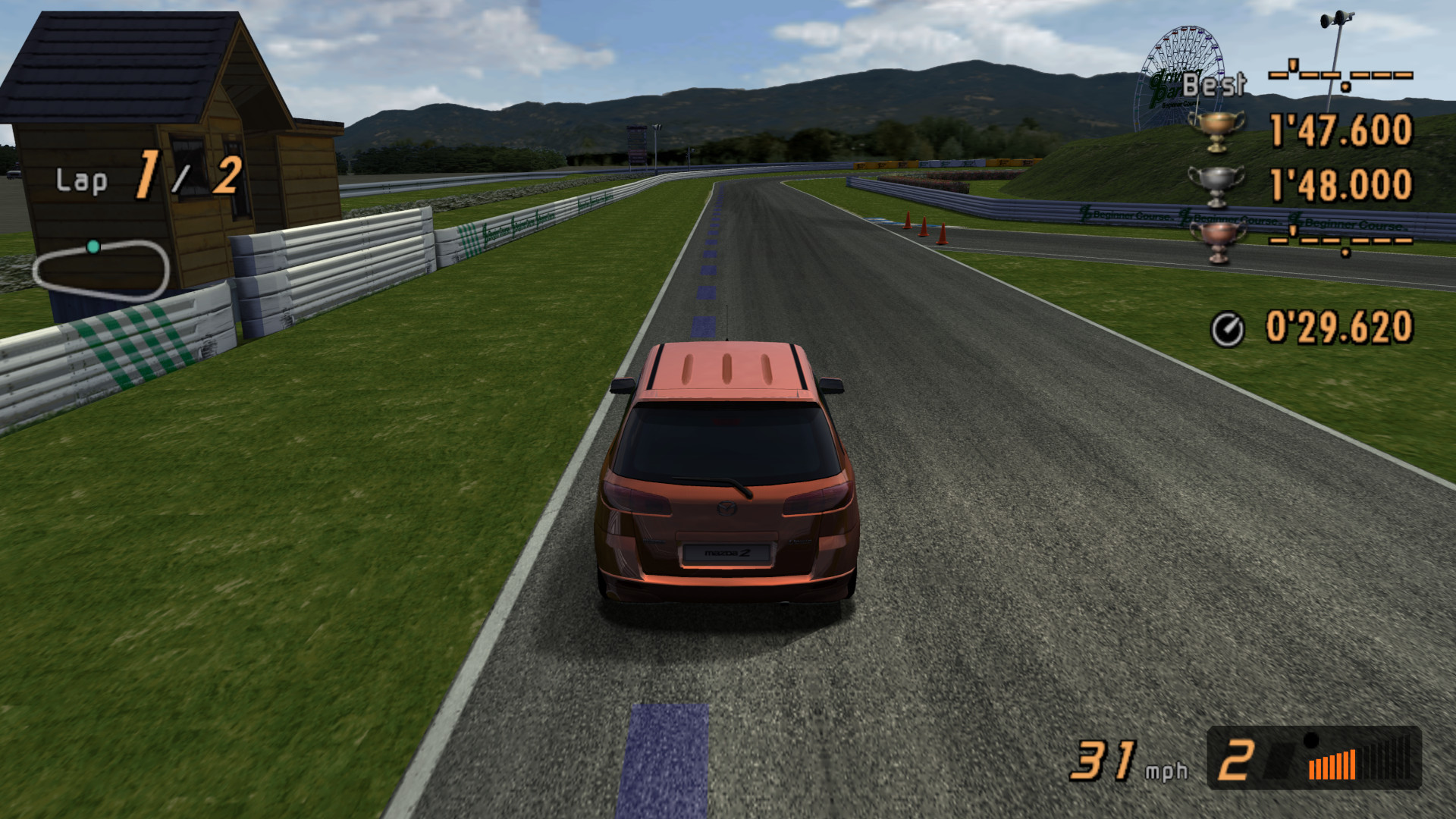 Gran Turismo 2 has a single timed Endurance race – Millenium In Rome 2 Hours Endurance. However, while limited to 2 hours, this race can also end after 99 laps, whichever comes first. With this cheat, this race becomes a true timed Endurance race: like in PS2 Gran Turismos, the lap counter now only shows finished laps and the race ends after 2 hours, regardless of how many laps were finished.