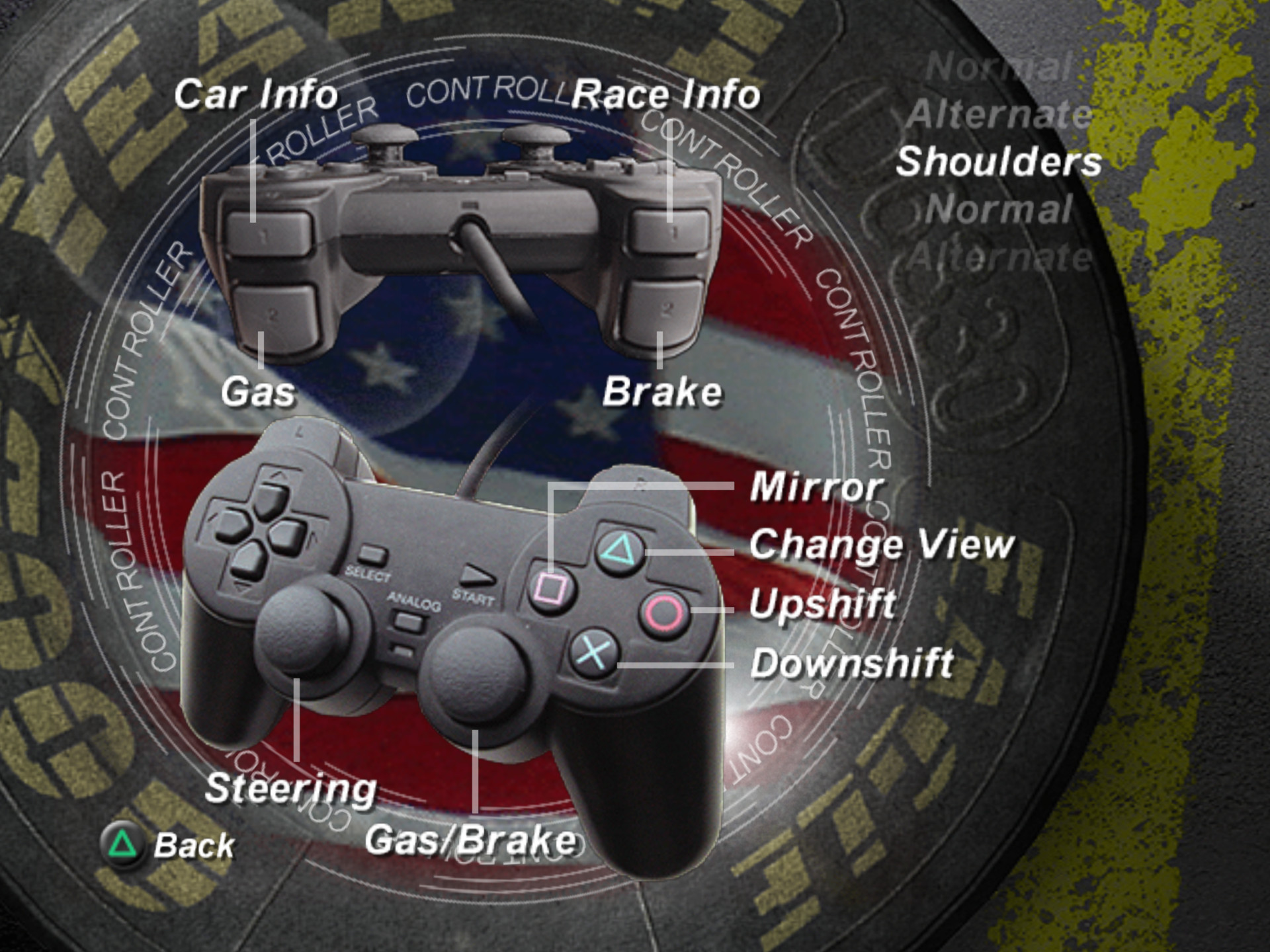 NASCAR Heat 2002, the first PS2 game from Monster Games, shipped with 4 control schemes to choose from. One of those control schemes was called “Shoulders”, and mapped throttle/brake to R2/L2. This translates really well to modern gamepads, allowing the player to use triggers for precise throttle control (just like I mentioned above).