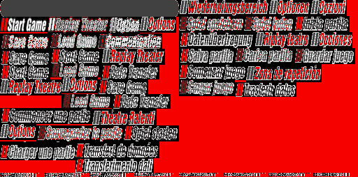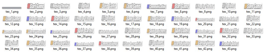However, later I found out that those were in fact buttons from different languages (e.g. US English and UK English), and so this would have broke when porting the mod to the PAL version – for example, had this been used in the PAL version in English, the second Start Game would’ve shown in French. To do it properly, I dissected the texture atlas format used by the game to pack all menu buttons into a single texture. The original atlas is a TIM texture packing individual textures with their palettes (seen as “garbage” on the bottom):