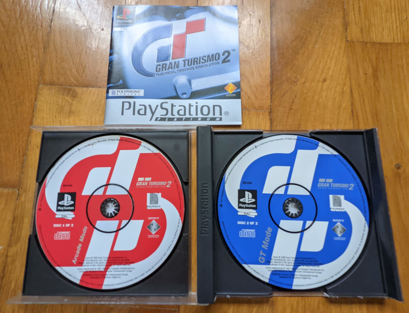 The amount of added content in comparison to the first game was so big that Polyphony could not fit it on a single 660MB CD, and therefore the game has separate discs for Arcade and Simulation/Gran Turismo Modes.