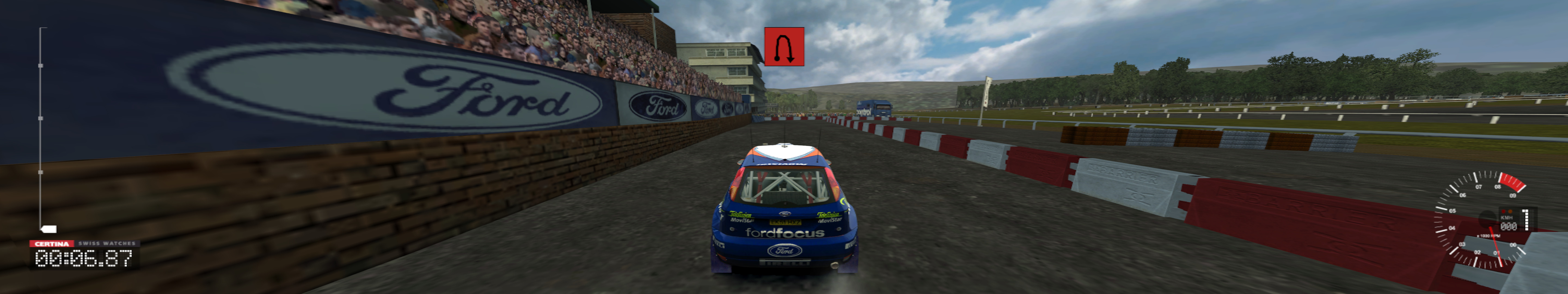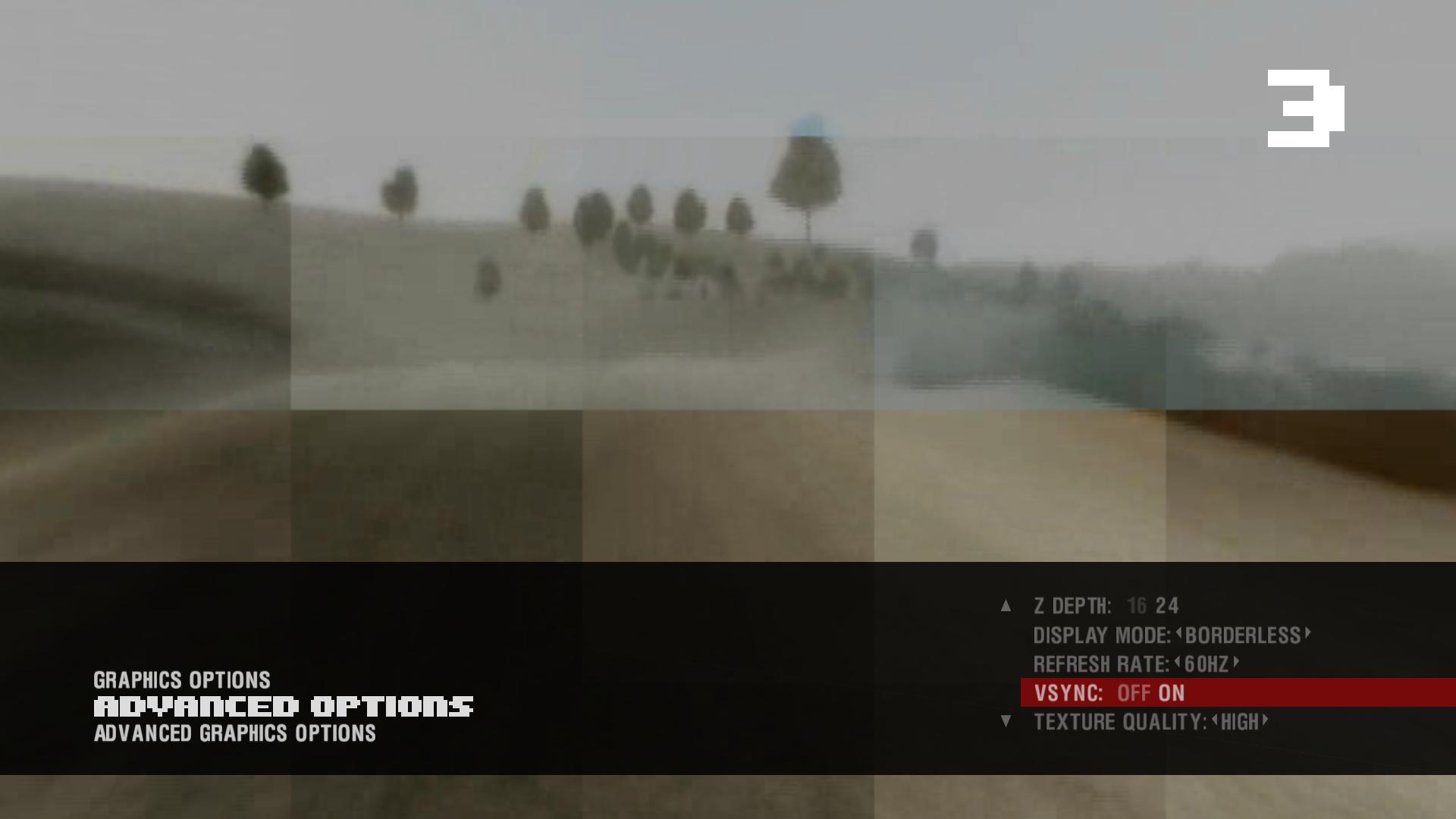 Console versions of CMR3 included a Widescreen option in Graphics Options, switching the aspect ratio from 4:3 to 16:9. While this option is gone from the PC versions, it’s still functional – it’s just that this option is underwhelming to begin with (also in the console versions), as it only corrects the 3D aspect ratio, and the only UI element it corrects is the co-driver arrow. That said, it’s not the worst, as it opts to fix the aspect ratio by increasing the horizontal FOV, rather than by shrinking it vertically: