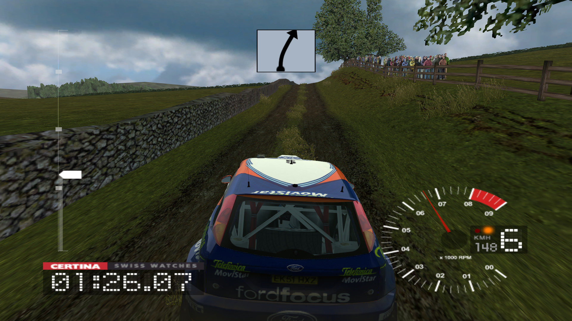 The removal of Nicky Grist explains why the game was now shipped on 2 CDs – while localized co-drivers only use one-shot samples that are played at specific triggers during the stage, Nicky Grist’s pace notes are full audio recordings, created for each stage individually. This makes Grist’s notes sound much more natural than the other co-drivers, at the cost of much higher file size – while each localized co-driver is typically between 1.5 MB and 2 MB in size, Grist’s pace notes are 435 MB!