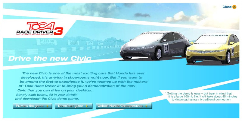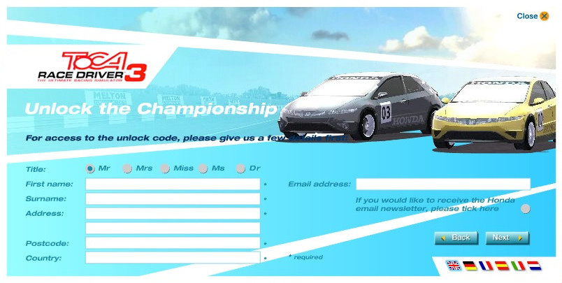 TOCA Race Driver 3 cheats hold one more trivia. The game featured an entire section of Honda championships and a cross-promo campaign with Honda, where players could unlock those championships for free with a generator hosted at honda.co.uk/racedriver/ (archived). These Honda-specific codes use a different RSA key than the remaining cheats.