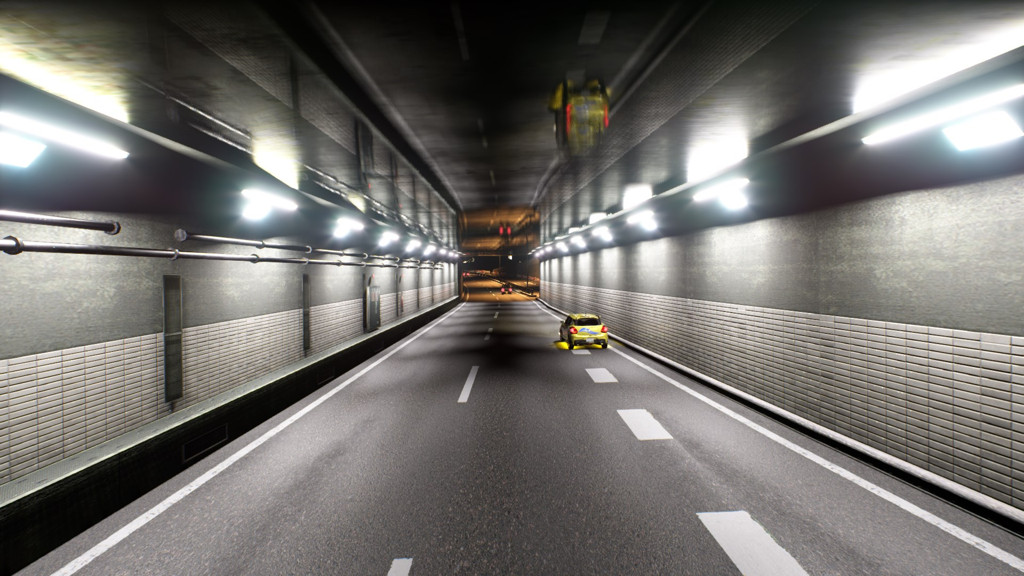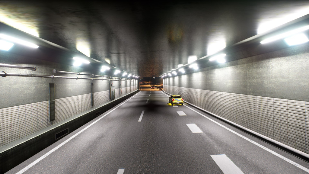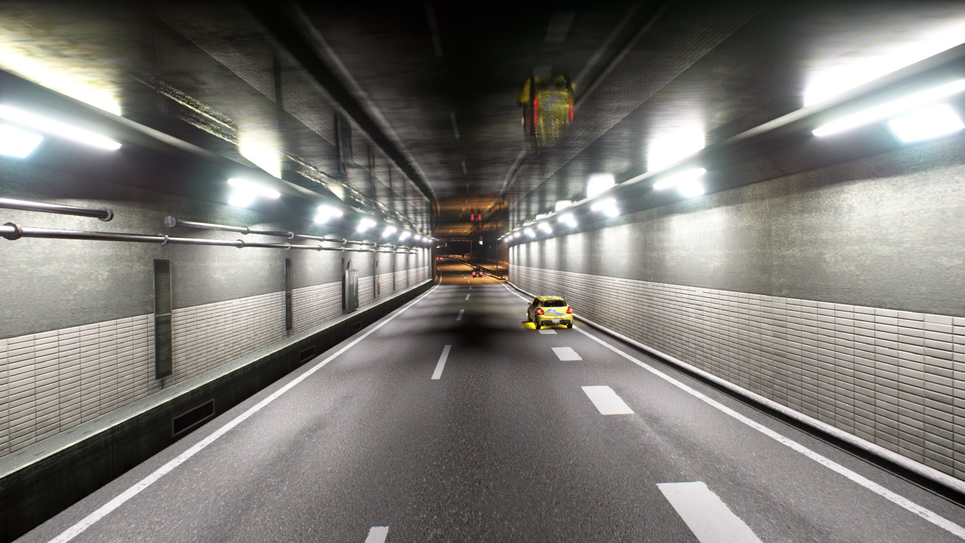 In some cases, possible minor oversights surface when playing without Lumen. For example, the road in this tunnel is correctly lit when not using Lumen GI, but the walls are not: