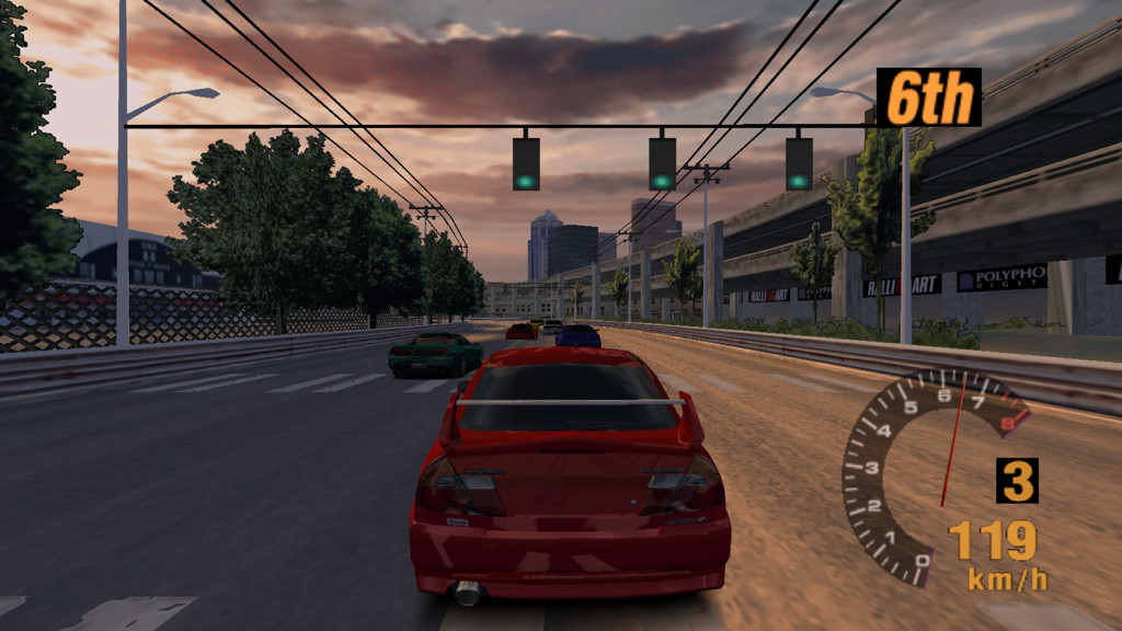 When I dove into this demo, I wanted to see how far it could be pushed content-wise. By default, the experience it offers is extremely limited – the player gets to race around Seattle Circuit against 5 AI cars for 120 seconds, driving a Mitsubishi Lancer Evo V, and they can only choose the Lancer’s color and the handling model, much like in Arcade Mode in the PS1 GTs. The “race” itself is also extremely barebones: it doesn’t count laps or split times, and the race cannot be finished; instead, the game automatically switches to a replay after the time limit expires.