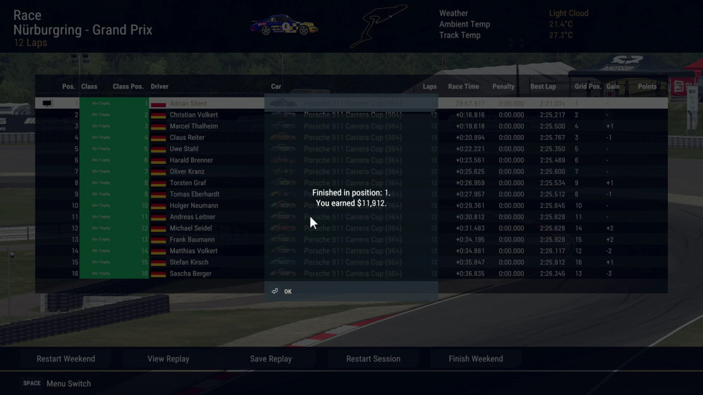 To give you an example: PMR is advertised as a sim racing game with a strong single-player career and progression. With wording like this, you would expect the Career Mode to be crafted in a way that rewards the player and lets them get immersed in the rituals of motorsports, right? In reality, this is how PMR rewards you for winning a race, for “progressing through the game”: