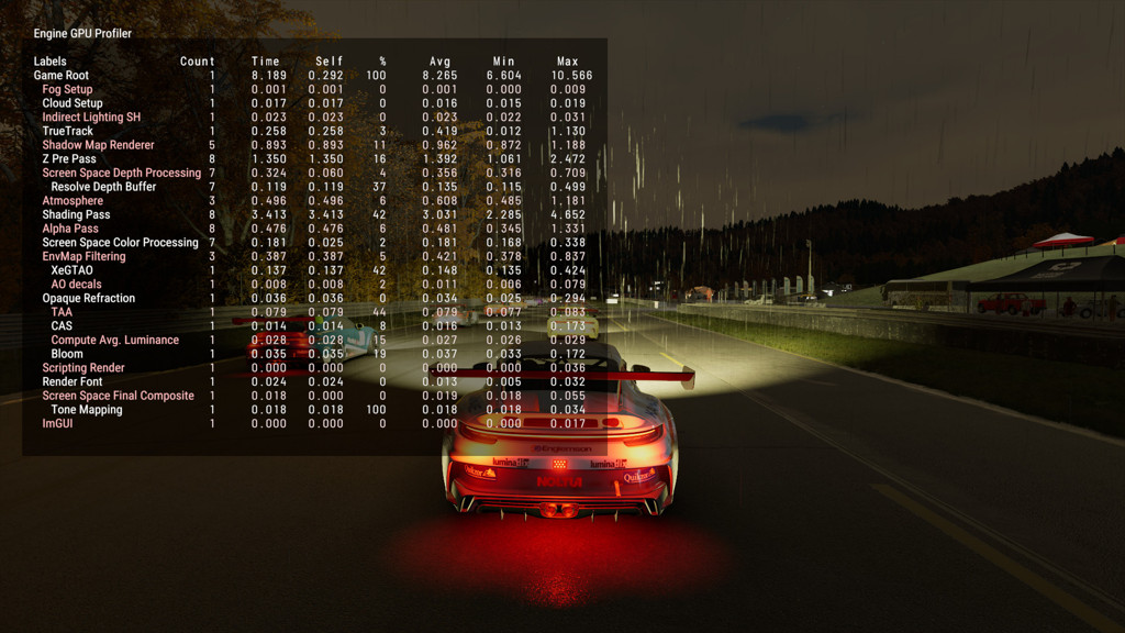 But hey, this time we have the profiling data available in the game, so we don’t need to settle for comparing only by eye! I won’t be breaking down every single metric here, but you can compare how the CPU and GPU costs of options increase with the details going up. If you’re struggling to hit satisfactory frame rates, this may provide useful insight on what options to turn down.