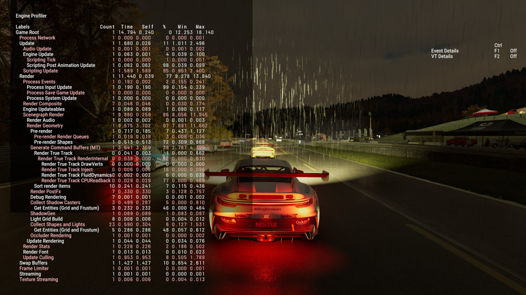 In general, I did not encounter too many tech issues while trying the game. I did have the game crash around three times and reported them, but it wasn’t anything consistent and reproducible. The game ran at well over 60FPS at 1080p during the races, although I was heavily CPU-bound even on my i9, while the GPU seldom maxed out, even with VSync disabled. In the current build, Vertical Sync appears to be broken, and it instead engages an inaccurate frame limiter that introduces jitter, but the game also doesn’t tear frames while in the windowed mode, so a combination of VSync off + Borderless Fullscreen allowed me to play without issues. Earlier review copies reportedly also suffered from intense stutter, but we have received an update just before I got my hands on the game, and this issue must have been resolved, as I encountered none of that.