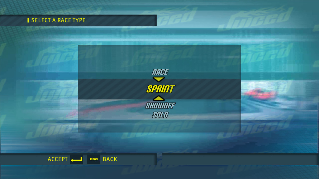 SilentPatchJuicedDemo.inifile and concerns only the second race. The following options are available:- 4 routes in the Race mode + reverse variants + 1 Point-to-Point race + its reverse variant.